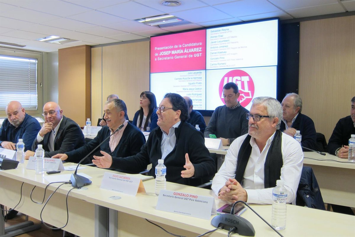 Así lo ha avanzado en una rueda de prensa para presentar su candidatura, en la que ha estado arropado por los líderes de UPTA y algunas federaciones --MCA-UGT y FSP-UGT-- y uniones territoriales --Madrid, Castilla y León, Cantabria, Asturias, La Rioja, Ceuta, Melilla, Navarra, Murcia, Aragón y Valencia-- que apoyan su paso al frente.