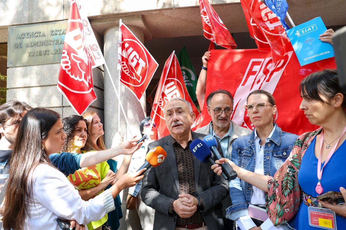 "No hay más tiempo, hemos hablado, sabemos que es lo que queremos cada uno, se trata de ponerlo encima de la mesa, ver si hay acuerdo o no hay acuerdo, y si no hay acuerdo, pues nos vamos a la mesa general, a la concertación, y el Gobierno en última instancia, que es el que tiene la obligación, decidirá", ha asegurado el sindicalista en declaraciones previas a su entrada a la Agencia Tributaria para visitar a los representantes de los trabajadores que se encuentran encerrados.