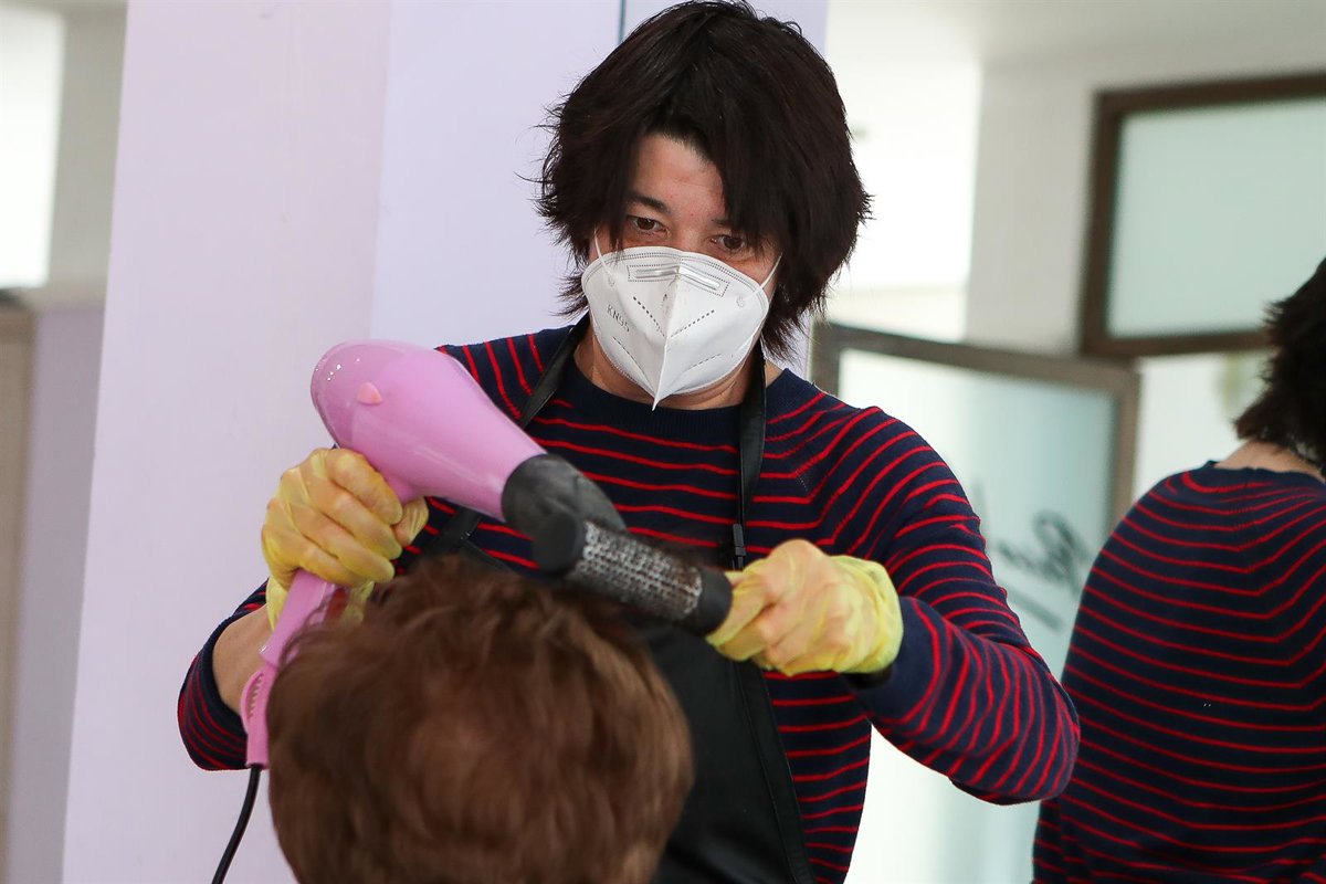 Maite Valero, propietaria de un salón de peluquería en Paterna, Valencia, atiende a una cliente durante el 55 día desde que el Gobierno declaró el estado de alarma en España para combatir el coronavirus COVID-19. A 8 de mayo de 2020, en Valencia, España - Ivan Terron / Europa Press