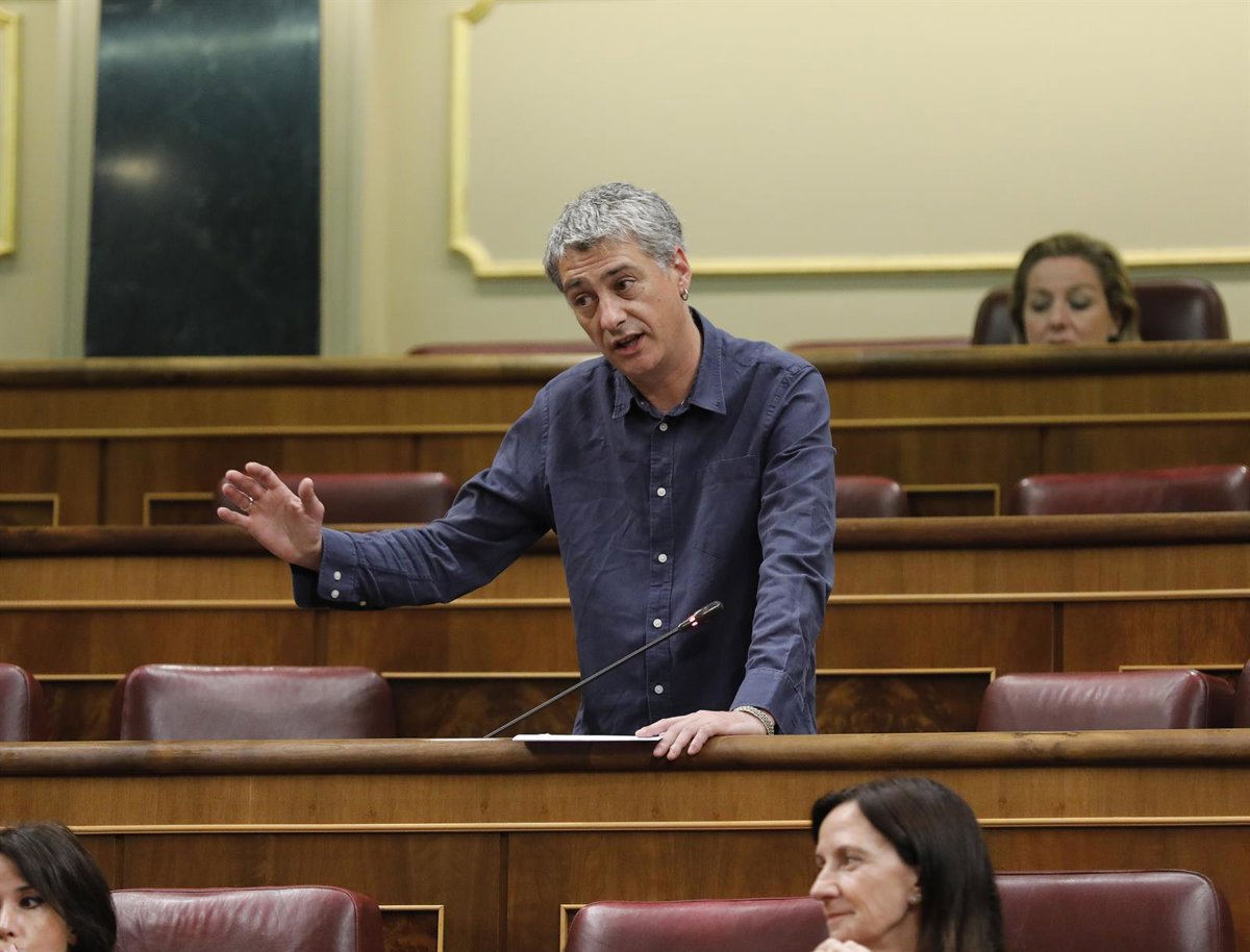 El diputado de EH Bildu Oskar Matute interviene durante una sesión de control al Gobierno en el Congreso - Javi Martínez / Pool - Archivo