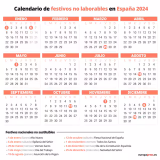 La relación de nueve festividades comunes a todo el país en 2024 es la siguiente: