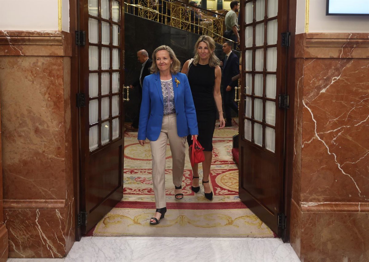Archivo - La vicepresidenta primera y ministra de Asuntos Económicos, Nadia Calviño (i), y la vicepresidenta segunda y ministra de Trabajo y Economía Social, Yolanda Díaz - Eduardo Parra - Europa Press - Archivo
