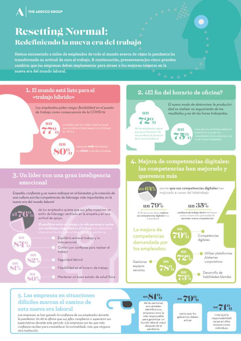 Para el director general de Adecco España, Íker Barricat, el "cambio repentino y dramático que hemos sufrido todos ha acelerado tendencias como el trabajo flexible, el liderazgo en entornos de incertidumbre o la recapacitación/reskilling de trabajadores". En ese sentido, ha expuesto que Adecco llevaba ya mucho tiempo adaptándose a estas nuevas formas de trabajo, "garantizando la seguridad de nuestros empleados y apostando por la innovación tecnológica".