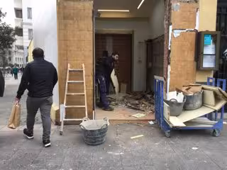 Archivo - Unos albañiles trabajan en el interior de un portal, en una imagen de archivo. - EUROPA PRESS - Archivo