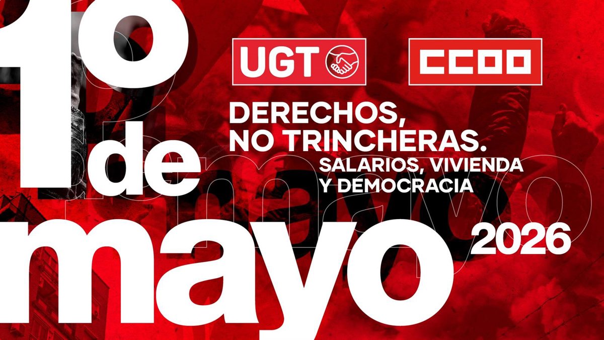 Bajo el lema 'Derechos, no trincheras. Salarios, vivienda y democracia', los dos sindicatos llevarán este año su manifestación central del Día Internacional del Trabajo a Málaga, a sólo unas semanas de la celebración de las elecciones andaluzas del 17 de mayo.