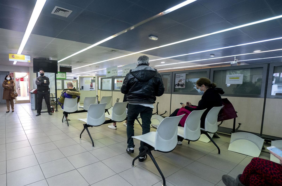 Varias personas esperan a ser atendidas en la Oficina de Empleo de Moratalaz. - Alberto Ortega - Europa Press