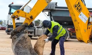 Obreros trabajan en la construcción del Hospital de Campaña al lado del Hospital la Fe en Valencia - IVÁN TERRÓN