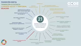 Según la patronal, estas 21 iniciativas están "especialmente orientadas" a acelerar y consolidar la doble transición ecológica y digital, así como la reindustrialización del país.
