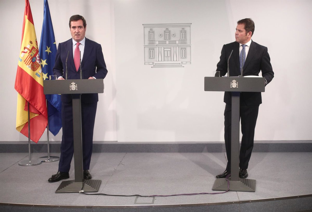 Archivo - (I-D) El presidente de la patronal CEOE, Antoni Garamendi, y el presidente de CEPYME, Gerardo Cuerva, en rueda de prensa tras la constitución con el Gobierno de la Mesa de Diálogo Social para la Recuperación, la Transformación y la Resiliencia - EUROPA PRESS/E. Parra. POOL - Europa Press