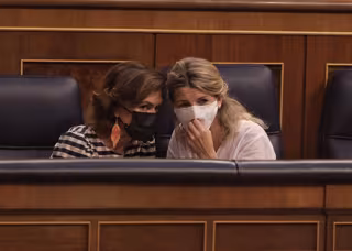 La vicepresidenta de la Presidencia, Relaciones con las Cortes y Memoria Democrática, Carmen Calvo y la vicepresidenta de Trabajo y Economía Social, Yolanda Díaz, en una sesión de control al Gobierno, en el Congreso - EUROPA PRESS/E. Parra. POOL - Europa Press