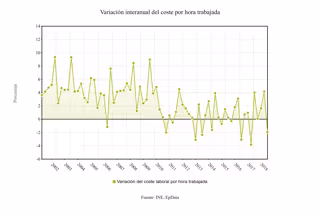 Este retroceso del coste por hora se registra tras acumular cuatro trimestres consecutivos de alzas interanuales.