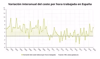 Por componentes, el coste salarial se incrementó un 4,6% en relación al primer trimestre de 2019, en tanto que los otros costes avanzaron un 4,2%. El coste laboral, excluyendo pagos extraordinarios y atrasos, creció un 4,4% interanual en el primer trimestre de 2020.