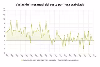 El coste por hora trabajada no experimentó variación en el primer trimeste respecto al mismo periodo de 2018, frente al incremento interanual del 0,5% que experimentó en el último cuarto del año pasado, según los datos provisionales del Índice de Coste Laboral Armonizado (ICLA) publicados este martes por el Instituto Nacional de Estadística (INE).