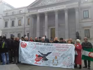 Los pensionistas y jubilados concentrados han mostrado su rechazo al veto del Gobierno a la proposición de ley de actualización de las pensiones conforme al IPC que abordará este mismo martes la Mesa del Congreso.