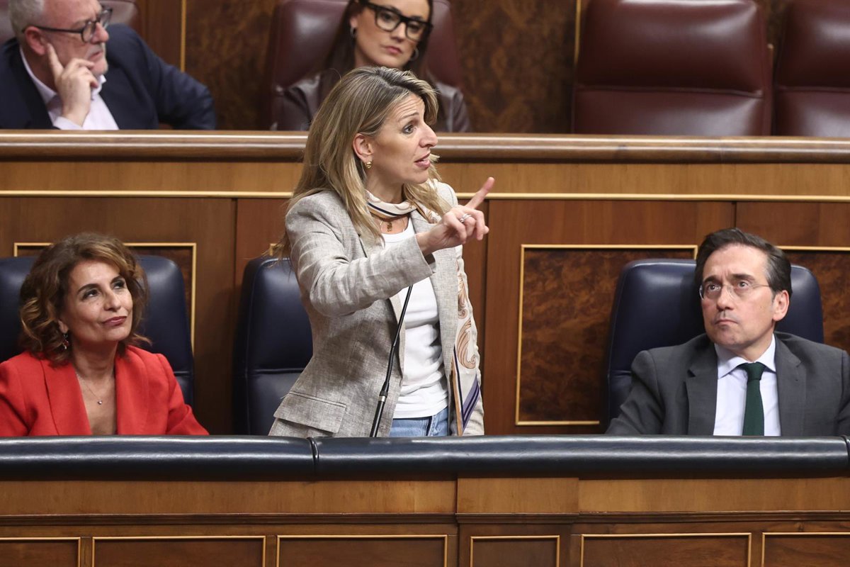 La vicepresidenta segunda y ministra de Trabajo y Economía Social, Yolanda Díaz, interviene durante una sesión de control al Gobierno, en el Congreso, a 25 de marzo de 2026, en Madrid (España). - Eduardo Parra - Europa Press