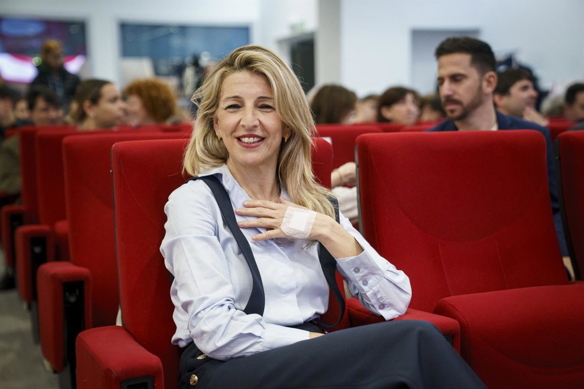 La vicepresidenta segunda y ministra de Trabajo y Economía Social, Yolanda Díaz clausura el acto 'Un PERTE al servicio de las personas y el planeta. Proyectos inspiradores para transformar el futuro' en la sede de la Fundación ONCE - A. Pérez Meca - Europa Press