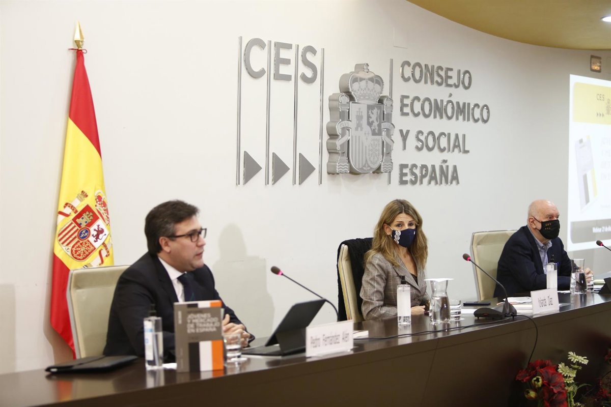 El presidente en funciones del CES, Pedro Fernández Alén, y la ministra de Trabajo y Economía Social, Yolanda Díaz - CES