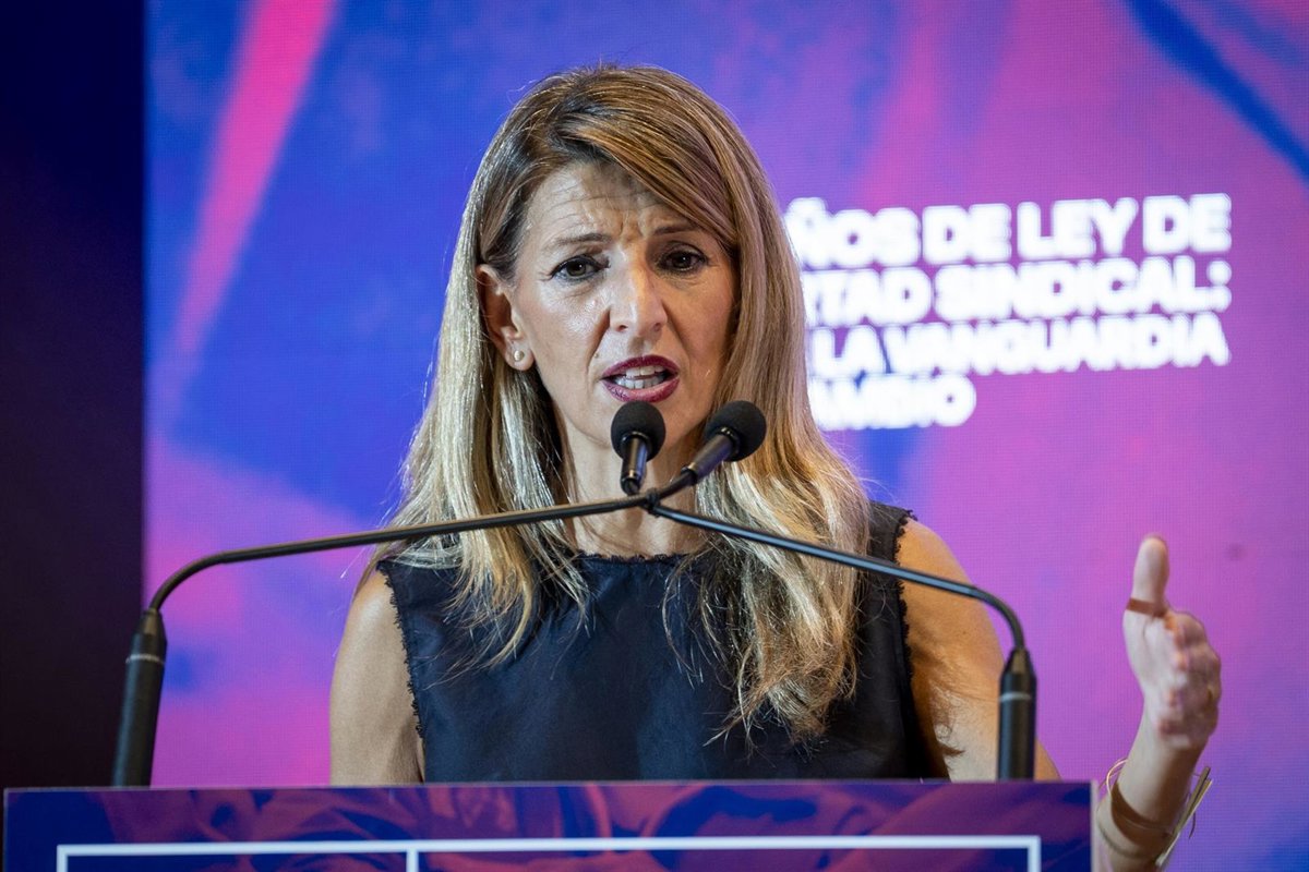 La vicepresidenta segunda y ministra de Trabajo y Economía Social, Yolanda Díaz, interviene durante unas jornadas en la sede de UGT, a 22 de octubre de 2025, en Madrid (España). UGT ha organizado las jornadas confederales de acción sindical sobre 'Negocia - A. Pérez Meca - Europa Press