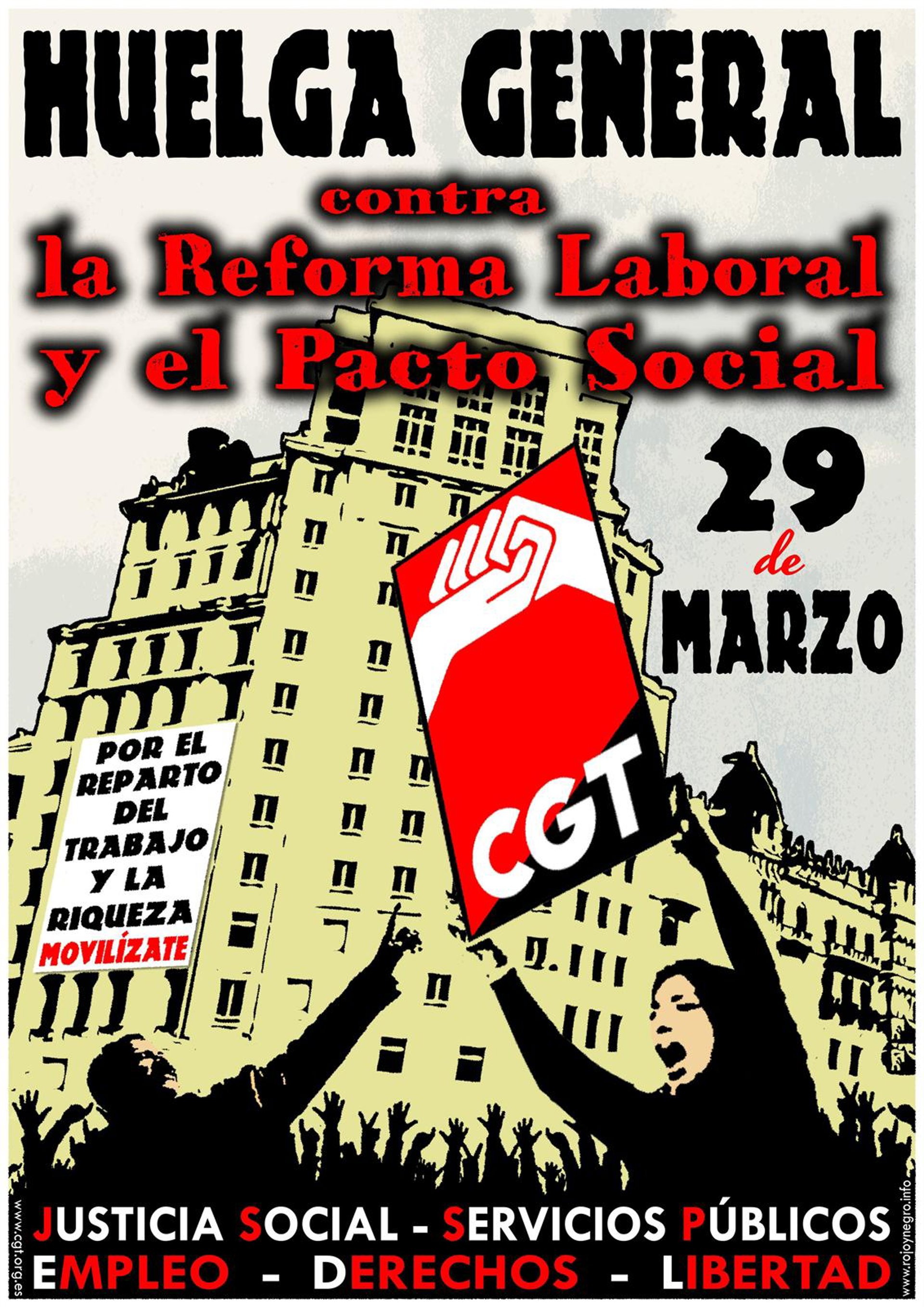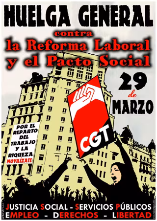 La Confederación General del Trabajo (CGT) registrará este próximo viernes en el Ministerio de Empleo y Seguridad Social su propia convocatoria de huelga general para el 29 de marzo.