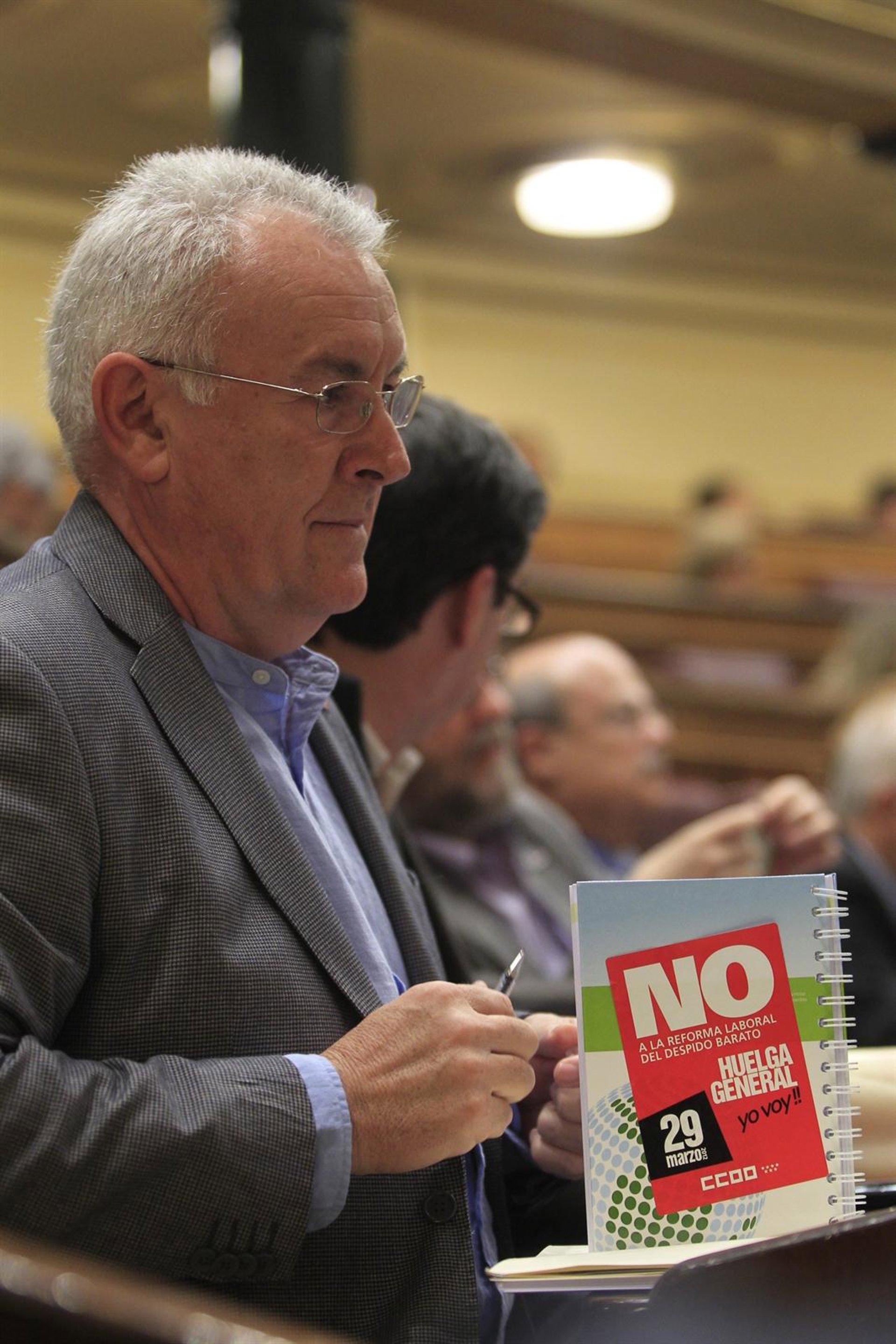 El coordinador general de IU ha denunciado que "nadie está hoy seguro en su empleo" con la reforma laboral hecha por el Gobierno del PP, por lo que pedido al Gobierno que retire la reforma y ha invitado a los diputados a sumarse a una huelga general que ha calificado de "muy justa y en legítima defensa".