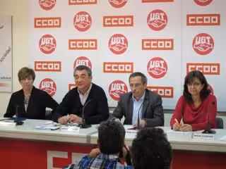 El documento de propuestas fue presentado en rueda de prensa los secretarios de Acción Sindical de CC.OO. y UGT, Ramón Górriz y Toni Ferrer, que estuvieron acompañados de la secretaria de Empleo y la secretaria confederal para la Igualdad de ambos sindicatos, Paloma López y Almudena Fontecha, respectivamente.