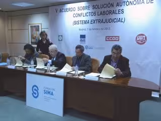 CC.OO., UGT, CEOE y Cepyme han firmado este martes el acuerdo sobre solución autónoma de conflictos laborales (ASAC), el quinto que consiguen en esta materia y cuyo objetivo es contribuir a la búsqueda de soluciones entre las partes a los problemas que surjan en el ámbito laboral de una manera más rápida y eficaz, evitando que se judicialicen los conflictos.