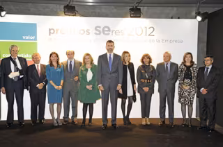 El acto también ha contado con la presencia de la Princesa Letizia; la secretaria de Estado de Empleo, Engracia Hidalgo; la directora general de la Fundación Seres, Ana Sainz; y el decano de Ordenación Académica de IE Business School, Joaquín Garralda, que ha representado al resto de los miembros del jurado.