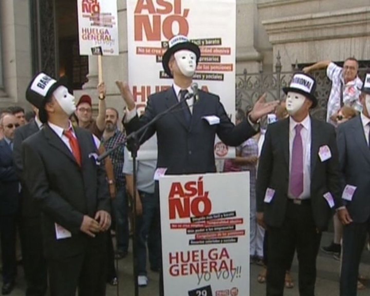 "Queremos animar a toda la ciudadanía a que participe en la huelga general. Hemos escenificado las protestas de los trabajadores hacia el Banco de España, que ha protagonizado una de las principales ofensivas contra los derechos de los trabajadores", señaló después del teatrillo el secretario general de CC.OO. de Madrid, Javier López.