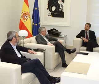 Al encuentro de hoy, que apenas ha durado una hora y media, han asistido los secretarios generales de CC.OO. y UGT, Ignacio Fernández Toxo y Cándido Méndez, respectivamente, así como el ministro de Trabajo, Valeriano Gómez, y los vicepresidentes primero y segundo, Alfredo Pérez Rubalcaba y Elena Salgado, respectivamente.