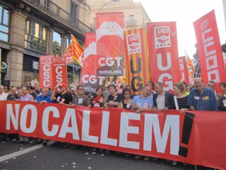 Su homólogo en CC.OO., Joan Carles Gallego, ha reiterado que los sindicatos exigirán un referéndum para que la ciudadanía vote las medidas, y ha señalado que, ante un rechazo masivo, el Gobierno tendría que dimitir.
