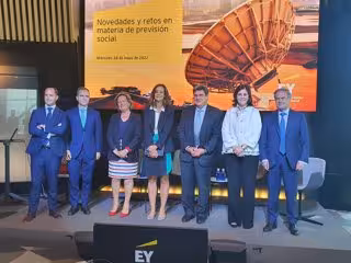 Además de Escrivá, en esta jornada han participado Carlos Bravo (CCOO)y Andrés Herrero (UGT); la presidenta de Unespa, Pilar González de Frutos, y Martín Godino, socio director de Sagardoy Abogados. Por parte de EY, han intervenido el exsecretario general de Empleo Juan Pablo Riesgo, socio de People Advisory Services (PAS) y responsable de EY Insights, así como Jaime Sol, socio director de PAS, y Olga Cecilia, socia responsable de Compensación y Beneficios de PAS.