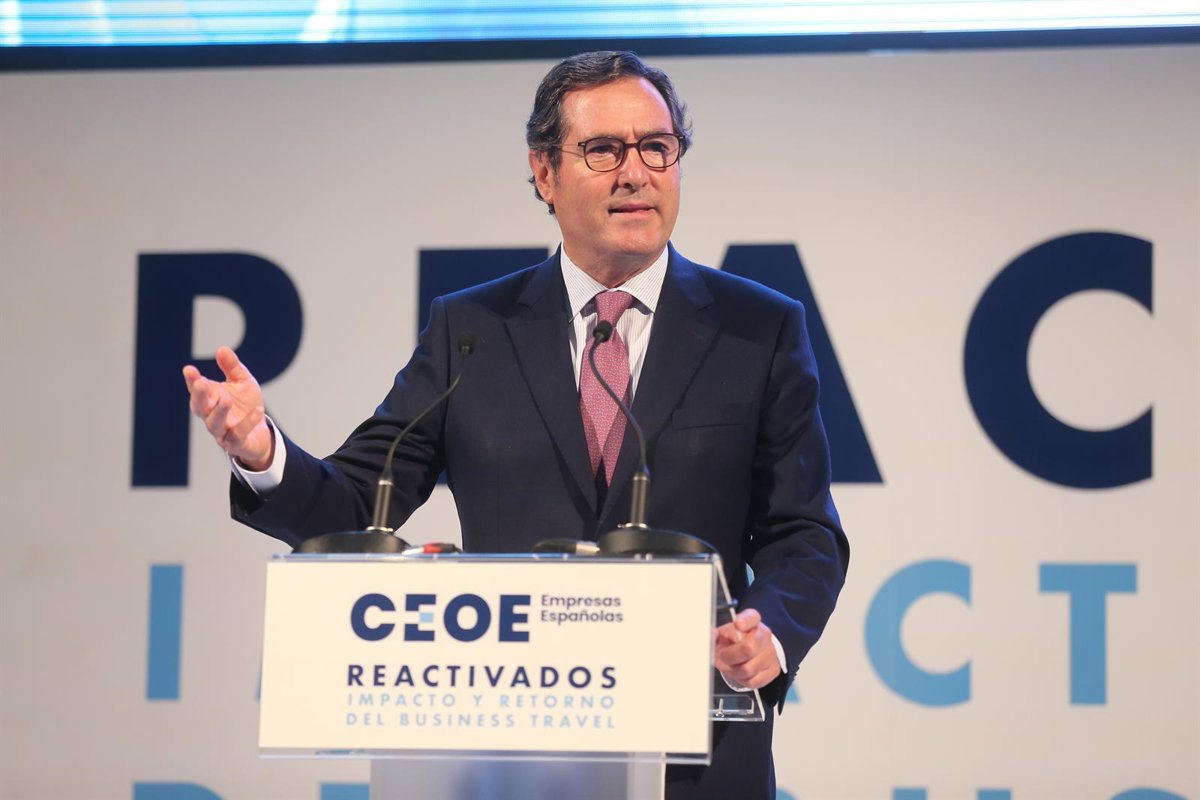Archivo - El presidente de la CEOE, Antonio Garamendi, interviene en el coloquio 'Reactivados: impacto y retorno del Business Travel' en la Bolsa de Madrid, a 29 de septiembre de 2021, en Madrid, (España). - Isabel Infantes - Europa Press - Archivo