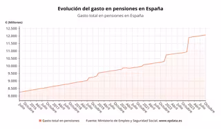 La nómina mensual ordinaria de las pensiones superó por primera vez en julio los 12.000 millones de euros y este mes vuelve a marcar un nuevo récord. Ello se debe a que, en aplicación de la reforma de pensiones, éstas han subido para 2023 un 8,5% como resultado de la inflación media del periodo diciembre de 2021-noviembre de 2022.