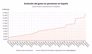 La nómina mensual ordinaria de las pensiones superó por primera vez en julio de 2023 los 12.000 millones de euros y este mes vuelve a marcar un nuevo récord tras la subida de las pensiones contributivas en un 3,8% para este año 2024.