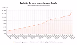 La Seguridad Social destinó en el presente mes de marzo la cifra récord de 10.781,7 millones de euros al pago de pensiones contributivas, un 4,9% más que en el mismo mes de 2021, según ha informado este viernes el Ministerio de Inclusión, Seguridad Social y Migraciones.