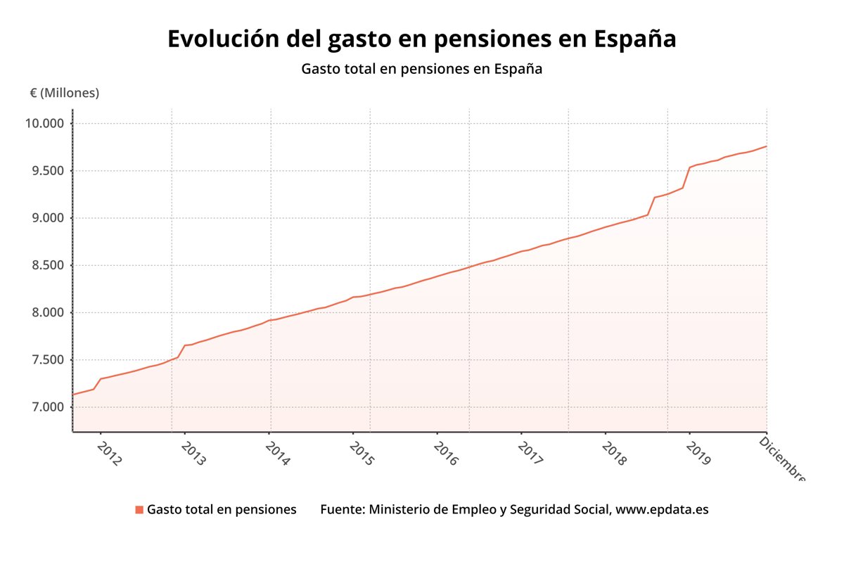 La Seguridad Social destinó en el presente mes de diciembre la cifra récord de 9.759,8 millones de euros al pago de las pensiones contributivas, un 4,7% más que en el mismo mes de 2018, según datos publicados este viernes por el Ministerio de Trabajo, Migraciones y Seguridad Social, que ha destacado que el crecimiento del gasto "se ha ido moderando" desde el inicio del año.