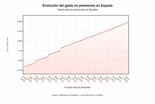 El gasto global del conjunto de pensiones llegó a superar el 8% interanual en la antesala de la crisis (2008). Tras dos meses creciendo por encima del 3%, el ritmo de crecimiento del gasto se ha moderado hasta el 2,9%.