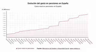 Por otra parte, la nómina mensual de pensiones de Clases Pasivas ascendió a 1.715,7 millones de euros en el mes de noviembre (último dato disponible). Esta cifra supone un aumento de 103,1 millones de euros respecto a la del año anterior, un 6,4% más.