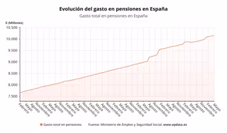 Por su parte, el pago de las prestaciones de orfandad conllevó un importe de 142,4 millones (+2,3%), y el de las prestaciones a favor de familiares totalizó 26,1 millones de euros (+3,2%).