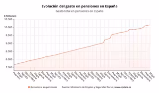 En mayo de este año se han abonado 9.836.115 pensiones contributivas, un 0,8% más que hace un año y casi 20.400 más que en abril. Del total de pensiones, que más de 6,1 millones eran pensiones de jubilación y 2,35 millones eran pensiones de viudedad.
