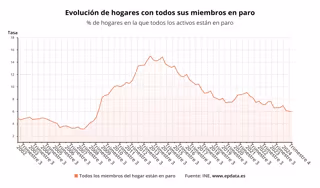 En concreto, 2024 cerró con 833.500 hogares con todos sus miembros en el desempleo después de que en el último trimestre del ejercicio disminuyeran en 21.100, un 2,4% menos que en el trimestre anterior.