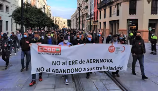 Manifestación de CCOO y UGT para exigir la retirada del ERE de Aernnova (Foto de archivo). - CCOO