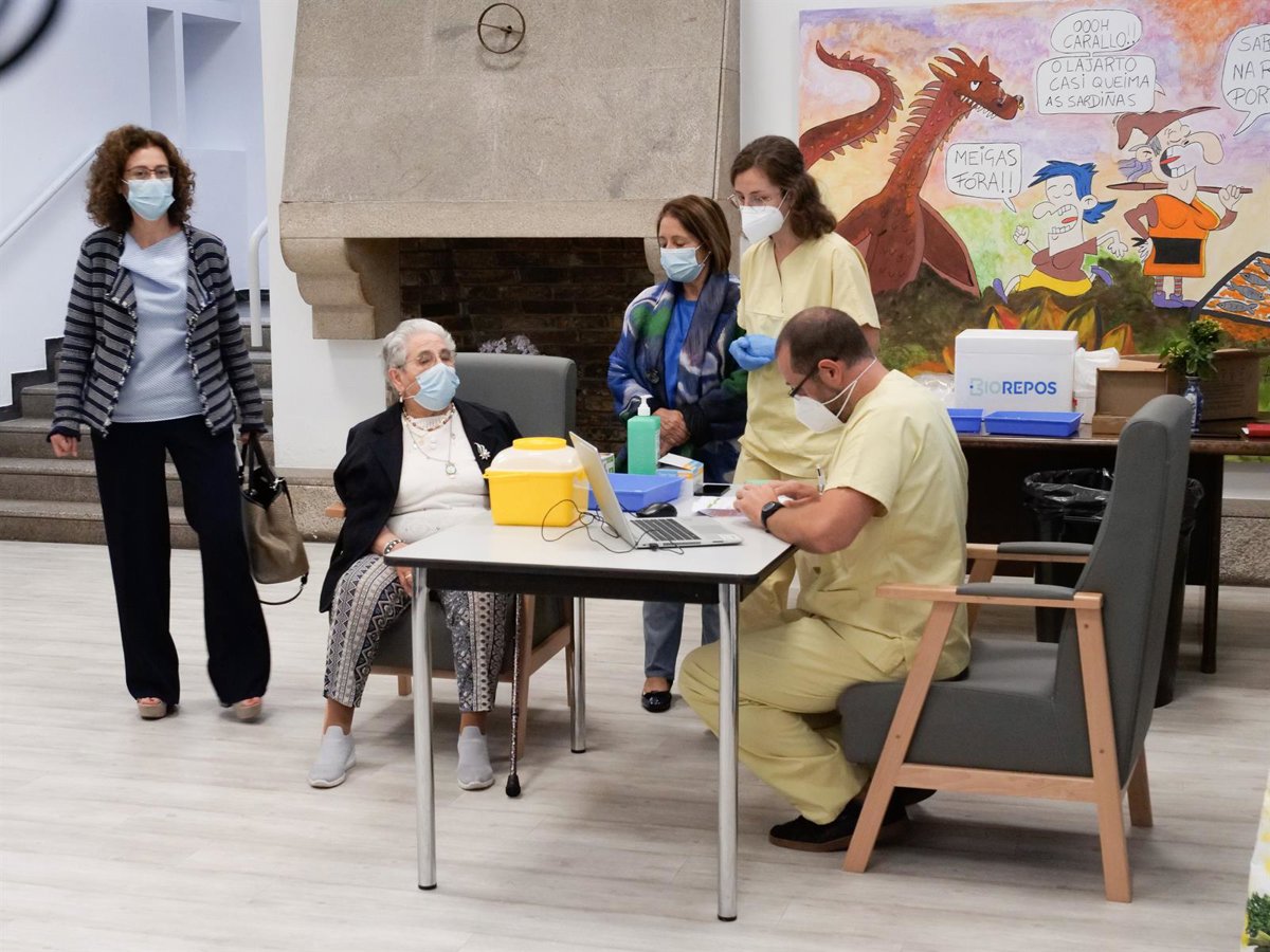 Una anciana recibe la vacuna anti Covid en una residencia. - César Arxina - Europa Press
