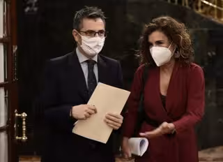 El ministro de Presidencia, Relaciones con las Cortes y Memoria Democrática, Félix Bolaños, y la ministra de Hacienda y Función Pública, María Jesús Montero, conversan a su llegada a una sesión plenaria, en el Congreso - Eduardo Parra - Europa Press