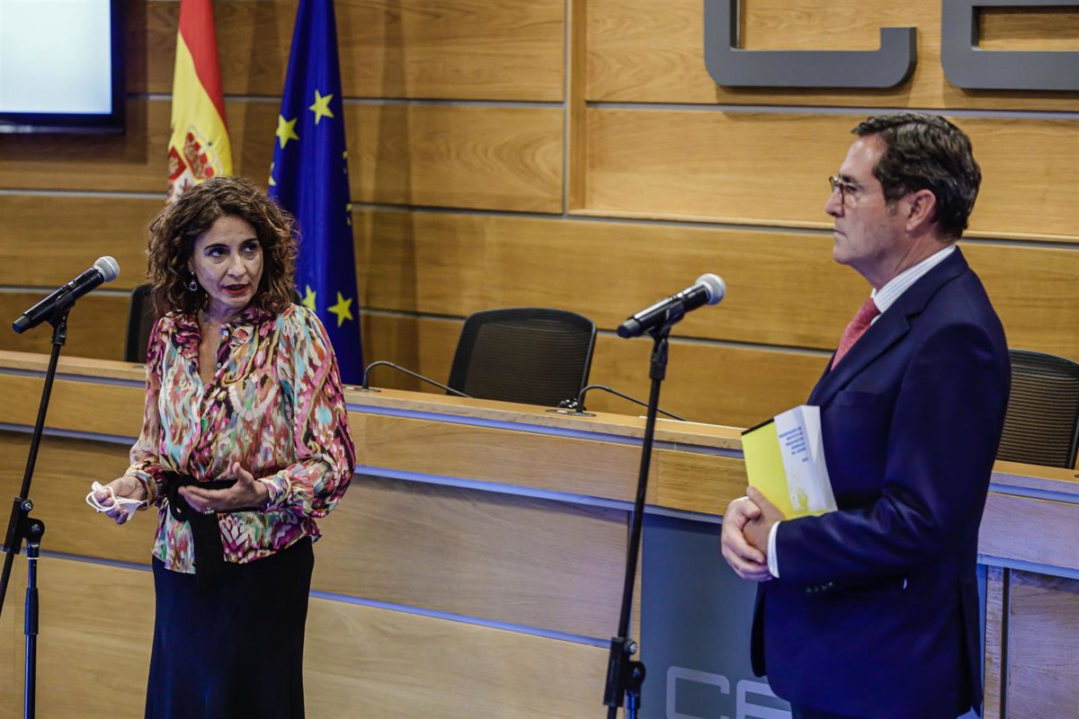 Archivo - La ministra de Hacienda, María Jesús Montero y el presidente de la CEOE, Antonio Garamendi - Carlos Luján - Europa Press - Archivo