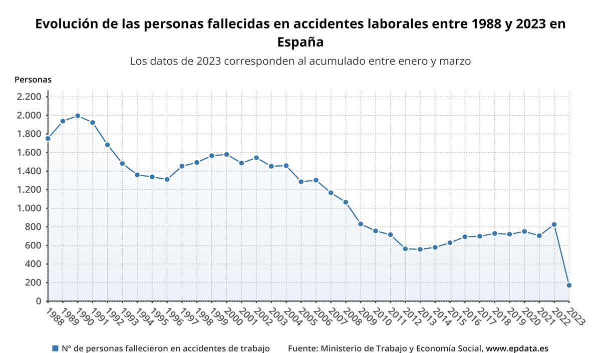 La estadística de Trabajo revela además que de los 171 trabajadores que perdieron la vida en un accidente laboral hasta marzo, 150 eran asalariados (-20,2%) y 21 eran trabajadores autónomos, un 16,7% más.