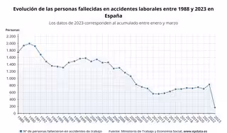 Asimismo, según los datos provisionales del Ministerio, hasta marzo se notificaron 132.660 accidentes sin baja laboral, un 4% más que en igual periodo de 2022.