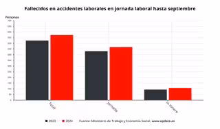 La estadística de Trabajo revela además que de los 573 trabajadores que perdieron la vida en un accidente laboral hasta septiembre, 527 eran asalariados, 55 más que en 2023 (+11,7%), y 46 eran trabajadores autónomos, seis menos que un año antes (-11,5%).