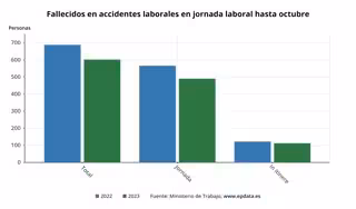 Asimismo, según los datos provisionales del Ministerio, hasta octubre se notificaron 474.499 accidentes sin baja laboral, un 0,8% más que en igual periodo de 2022.