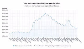 Desde el inicio de la serie histórica comparable, en 1996, el paro ha subido en noviembre en 21 ocasiones y ha bajado en siete, siendo el mayor repunte el de 2008 (+171.243 desempleados) y el mayor descenso, el de noviembre de 2021 (-74.381 parados).